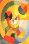 Bildzitat nach Klaus Staeck 'Vorsicht Kunst!' (1982) 2. Als grafischer Untergrund für diese Tabelle wurde eine Arbeit von Delaunay ausgewählt mit dem Titel 'Rythme, joie de vivre' (1931), da sie in besonderer Weise die gegenseitige Abhängigkeit und Ergänzung von analoger und digitaler Tätigkeit - so wie es in dieser Schule der Kreativität Prinzip sein soll - symbolisieren soll. Er nimmt mit dem Thema der 'Disque' ein Motiv aus dem Jahre 1912 wieder auf, dem Jahr seiner ersten ungegenständlichen Arbeit, einer Scheibe aus verschiedenen Farbsegmenten, die Bewegung und Freude suggerieren.
