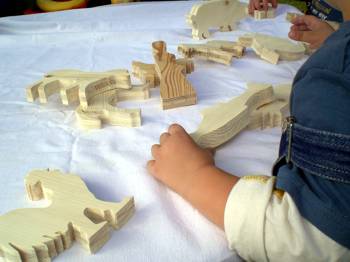 Ein netzgestütztes Gemeinschaftsprojekt zwischen meiner Kollegin Anja Wuttke-Neumann und Reinhard v.Tümpling Frau Anja Wuttke-Neumann ist Rektorin an der Katholischen Schule St. Hedwig in 15370 Petershagen, Elbestr. 48, Brandenburg. Wir beide arbeiten bereits seit einigen Jahren an Themen miteinander, die einige sachliche Überschneidungen ergeben und kamen so auch zum Thema Bauernhof. Wir beide haben vereinbart, dass ich zum Unterricht des Bauernhofprojekts für die SchülerInnen die benutzbaren Holzfiguren der Tiere herstelle. Dieses Gemeinschaftsprojekt hatte eine Vorgeschichte von den spielerisch umgesetzten Vorgedanken, über verschiedene Zwischenstufen bis hin zur endgültigen Verwirklichung im Mai 2008.
