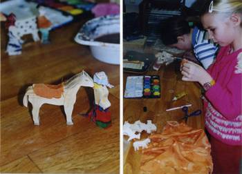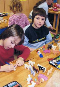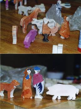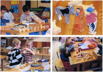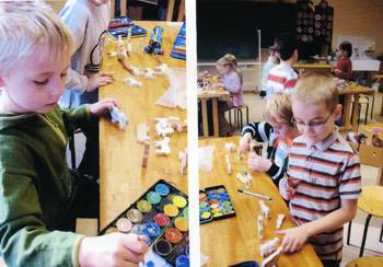 Die SchülerInnen der ersten Klasse haben sich im Sachkundeunterricht spielerisch mit den Figuren vertraut gemacht, sie kreativ bemalt und fantasievoll ausgestaltet.