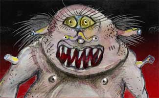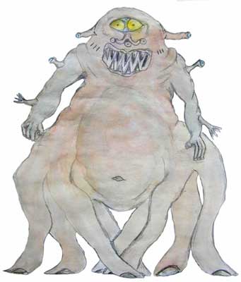 wodurch z.B. Kopf und Bauch stärker hervortreten, das Gewirr der Beine